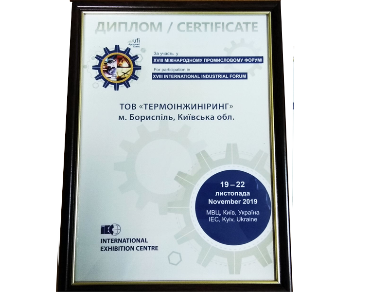 Employees of LLC “Thermoengineering” took part in the exhibition of products at the XVIII International Industrial Forum 2019.